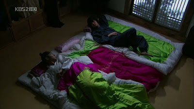 Sepertinya Jae Shin ingin menjauh dari Yoon Hee sekaligus menjaga Yoon Hee karena terlalu dekat tidurnya dengan Sun Joon, ini tidak pantas untuk seorang gadis. hehehe..Sementara Yoon Hee, tidur di ujung kasur.